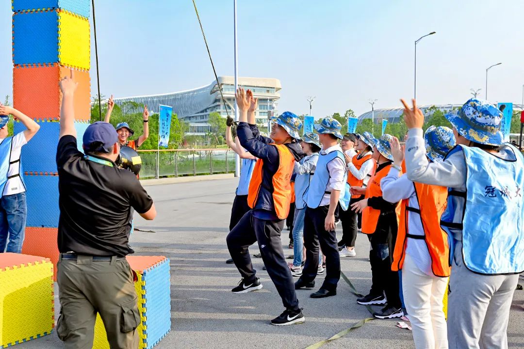 在紧接着的拔河比赛中,队员们斗志昂扬,咬紧牙关,场边的加油声此起彼伏,响彻在冠城大通游艇码头。而在随后进行的旱地冰壶和共筑高塔项目更是考验着大家团队协作的能力,公司高管与华南区域经营层也积极地参与到比赛里并肩作战、集思广益。